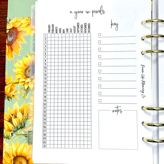 A Year In Pixels A5 Planner Refill, A5 Yearly Tracker Insert, Mood Tracker Planner Inserts, Bullet Journal Tracker, Habit Tracker Insert