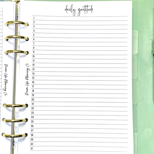 A5 Daily Gratitude Pages, Gratitude Inserts, Gratitude Planner Inserts, A5 Planner Inserts, Bullet Journal Pages, Planner Refill Pages