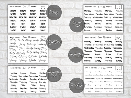 CLEAR Foiled Days of the Week Stickers