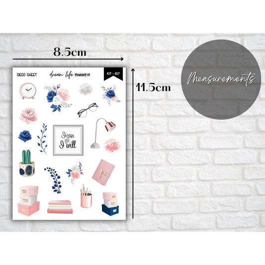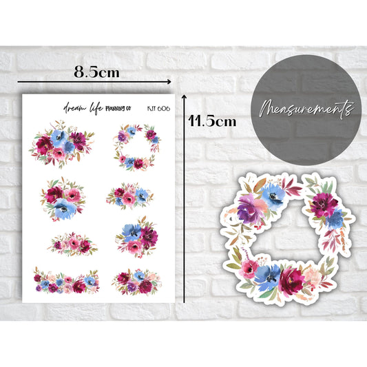 Pink and Blue Floral Deco Planner Stickers Decorative Planner Stickers for Bullet Journal Stickers Cute Planner Sticker Sheets Floral