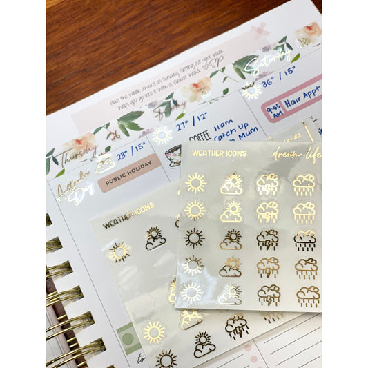 Matte Foiled Weather Icons Planner Stickers Bullet Journaling Weather Icons Planner Stickers Foiled Icons Cute Planner Sticker Foil Stickers