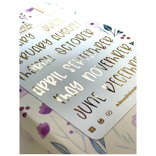 Foiled Monthly Header Stickers | Bullet Journal | Planner Stickers | Cute Planner Sticker Sheet | Sticker Sheet | BUJO
