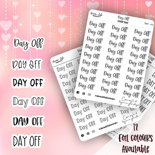 Foiled “Day Off” Stickers | Scripts | Bullet Journalling | Planner Stickers | Cute Planner Sticker Sheet | Sticker Sheet | BUJO