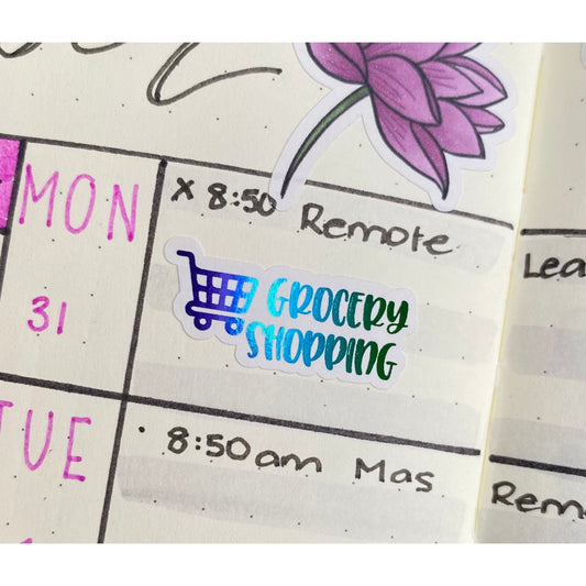 Foiled “Grocery Shopping” Stickers | Bullet Journaling | Scripts | Planner Stickers | Cute Planner Sticker Sheet | Sticker Sheet | BUJO