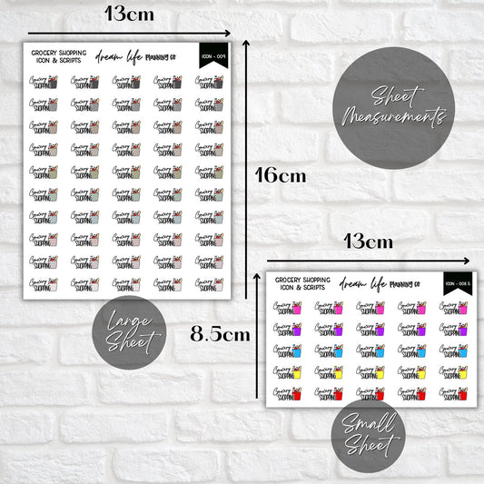 Grocery Shopping Doodle Icon Planner Stickers, Grocery Script Planner Stickers, Bullet Journal Stickers, Planner Diary and Calendar Stickers