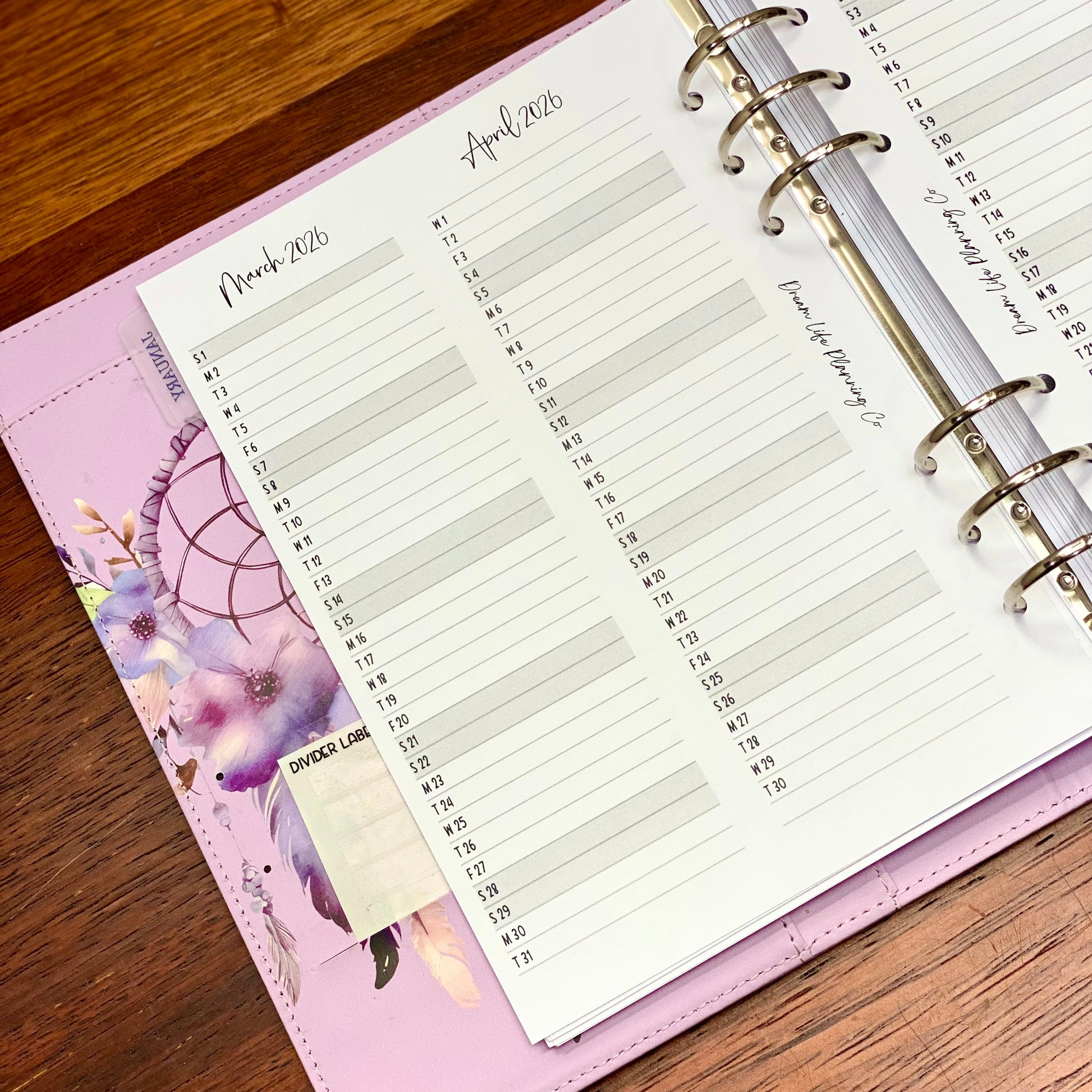 Maximise your productivity with our 2026 - Vertical Month At A Glance Inserts.