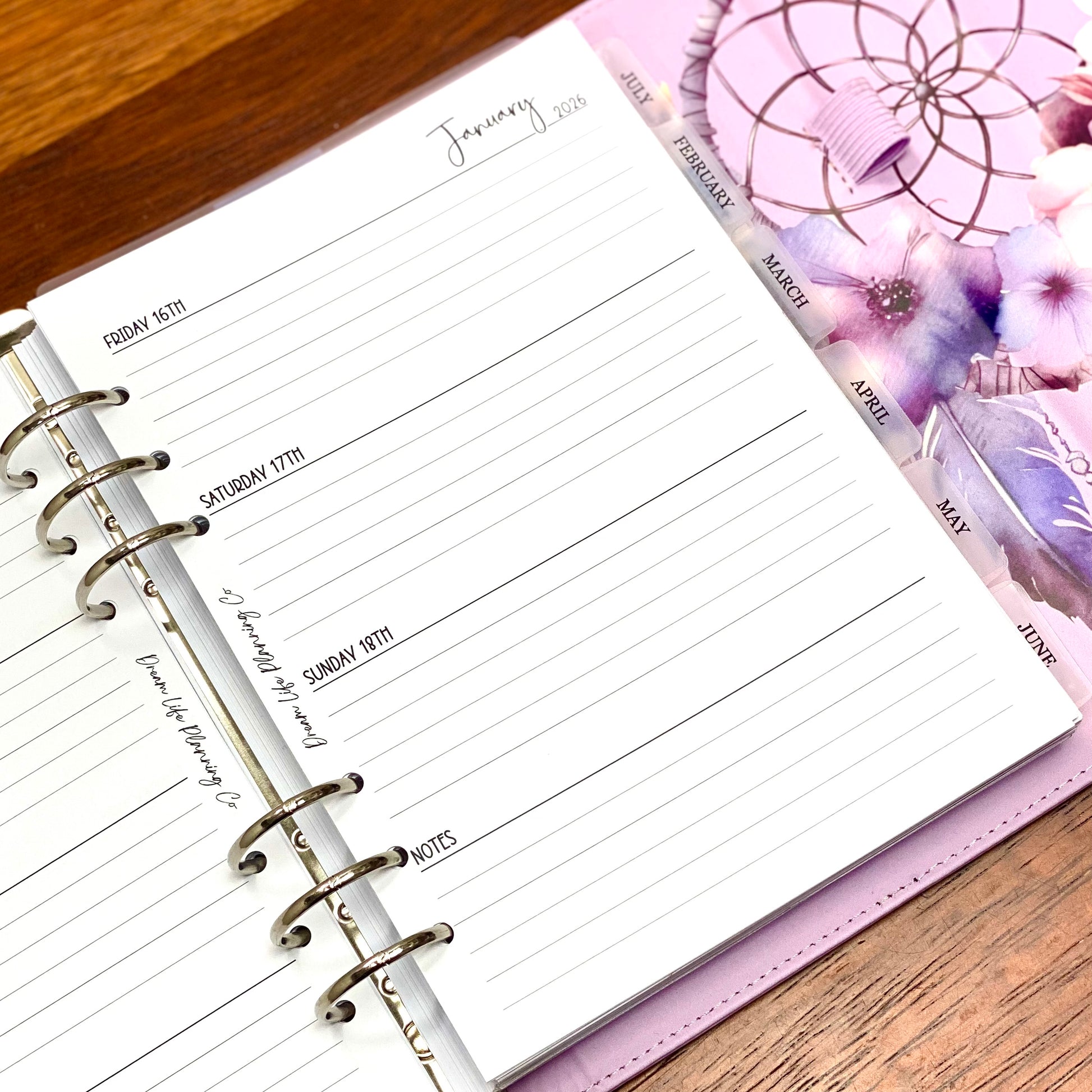 Each month ends with your choice of lined or grid paper, which not only gives you space to jot down any notes for the following month, but allow the months to be easily separated by your favourite dashboards or tabbed dividers.